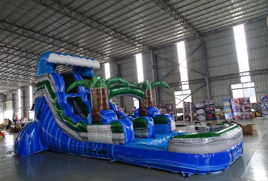 Are you looking for a waterslide for your next party event ? Look no further than Jump 4 Joy Inflatables!! Feast your eyes on this tropical waterslide with its vibrant colors and sleek design with 3D palm trees, its sure to have your guests excited and entertained, as riders climb the soft foam steps to the top of the slide, sit down, and get ready to plunge down into a refreshing pool!! Our Tropical wave waterslide is perfect for any birthdays, schools functions, church festivals, and backyard events. But wait, that's not all!! This waterslide is not just for kids, but ADULTS AS WELL!! This tropical wave waterslide will have your friends and family enjoying this waterslide all day long!! Remember, WE JUST DON'T PROMISE....WE DELIVER!! To see if we deliver and service to your area check our DELIVERY AREAS PAGE. You can easily reach us on our CONTACT PAGE or call us at 401-413-3268 24/7 ONLINE ORDERING! JUST CLICK THE GREEN BUTTON BELOW.
