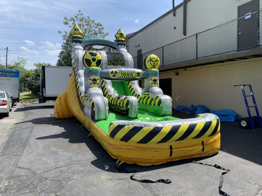 Are you looking for a waterslide for your next party event ? Our Toxic Falls Waterslide is always the center of attention at party events! The vibrant colors and not to mention those graphics on those barrels!! It's not only for kids, but ADULTS AS WELL! This waterslide will keep all your guests at your party event entertained and cooled off on a hot summer day. So why wait, rent one today!! Remember, WE JUST DON'T PROMISE....WE DELIVER! To see if we deliver and service to your area check out our DELIVERY AREAS PAGE. You can reach us on our CONTACT PAGE or call us at 401-413-3268 24/7 ONLINE ORDERING! JUST CLICK THE GREEN BUTTON BELOW.