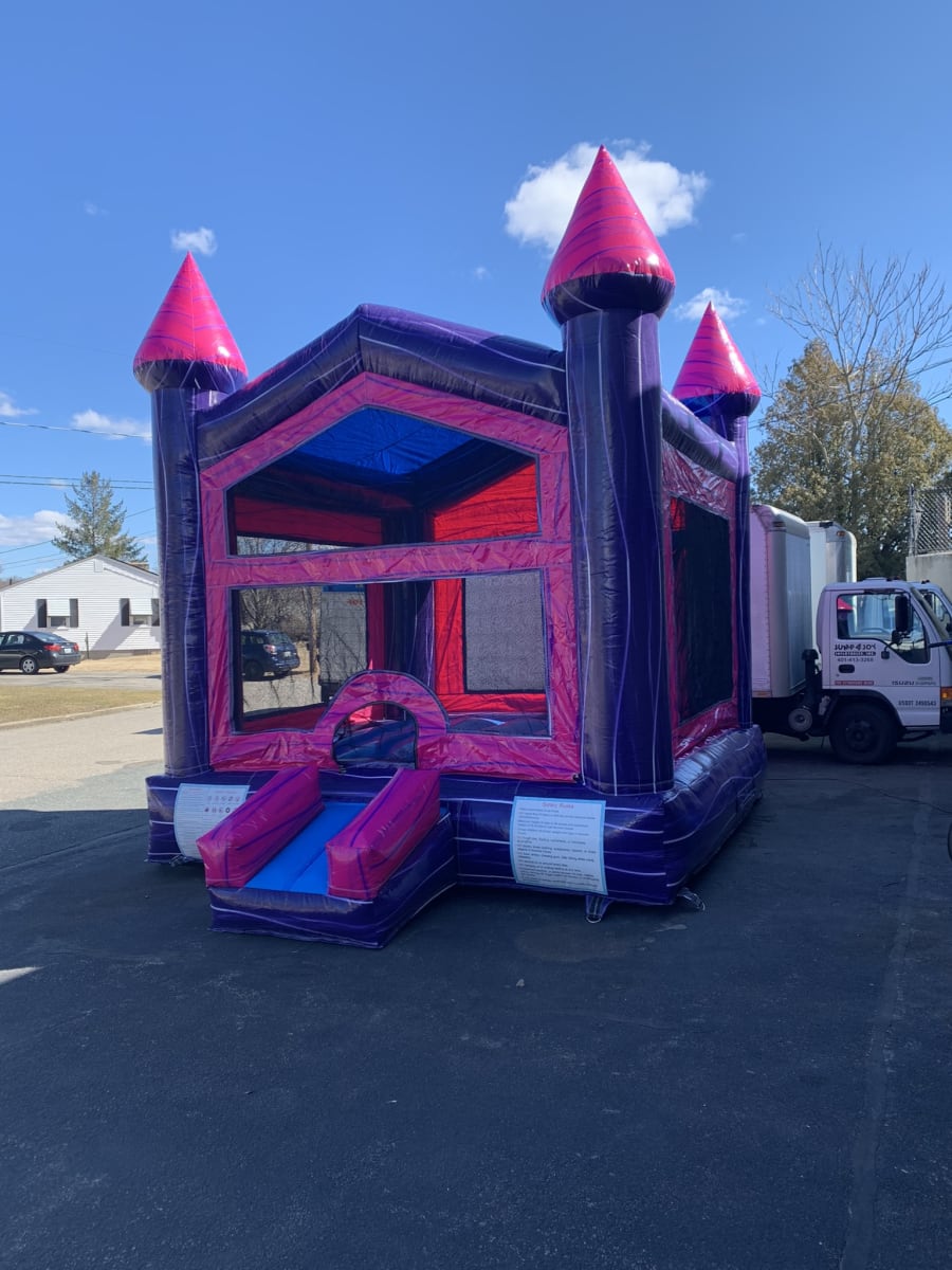 Are you looking for a bounce house for your little princess party ? Look no further than our Purple Palace Bounce House! Not only does it look beautiful at backyards events, it keeps kids excited and entertained. With its large jump area and 2 basketball hoops inside, Its sure to give your kids a great time to remember! Holds up to 6-8 kids of equal size at a time in bounce house. Great for girls birthday, girls communion, backyard events. Most importantly its MOM APPROVED!! To see if we deliver and service your area check out our DELIVERY AREAS PAGE. If you are interested in our service we can be reached on our CONTACT PAGE or call us at 401-413-3268 24/7 ONLINE ORDERING! JUST CLICK THE GREEN BUTTON BELOW. MAKE SURE TO FOLLOW US ON https://www.facebook.com AS WE UPDATE NEW INVENTORY FREQUENTLY.