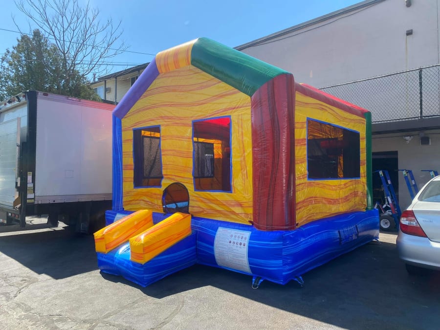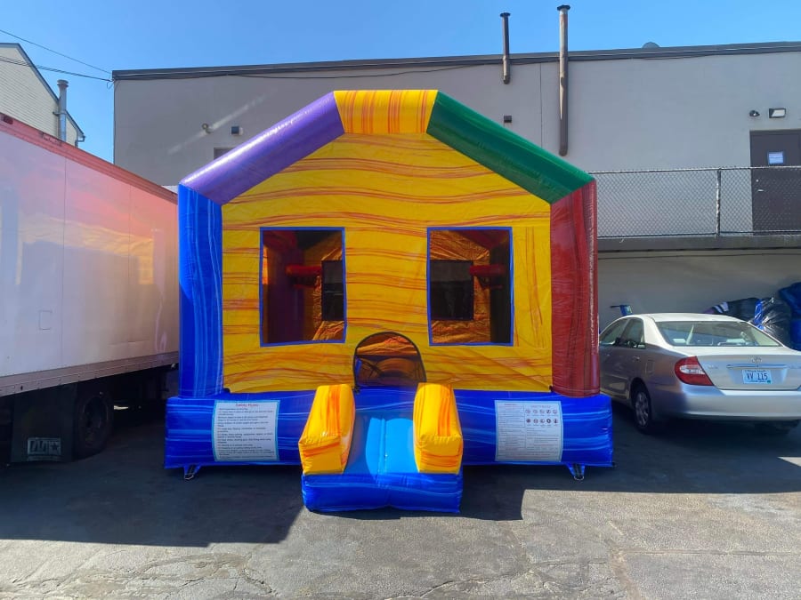 Are you looking for a Bounce House for your next party event? Look no further than Jump 4 Joy Inflatables! This beautiful marble bounce house really stands out at party events with its vibrant colors and sleek design look, this neutral friendly bounce house has a spacious jump area along with 2 basketball hoops inside that will keep the kids busy and entertained all party long! Our Funhouse Bounce House with hoops is great for birthdays, school functions, church festivals, summer camps, backyard events. This Bounce House holds a maximum of up to 6-8 kids at a time of equal size in Bounce House. If you are having a party event that has boys and girls attending, Then we recommend the Funhouse bounce house with hoops!! To see if we deliver and service your area check out our DELIVERY AREAS PAGE. If you are interested in our service you can simply call us at 401-413-3268 our CONTACT PAGE or our 24/7 ONLINE ORDERING JUST CLICK THE GREEN BUTTON BELOW. MAKE SURE TO FOLLOW US ON https://www.facebook.com AS WE UPDATE INVENTORY FREQUENTLY.