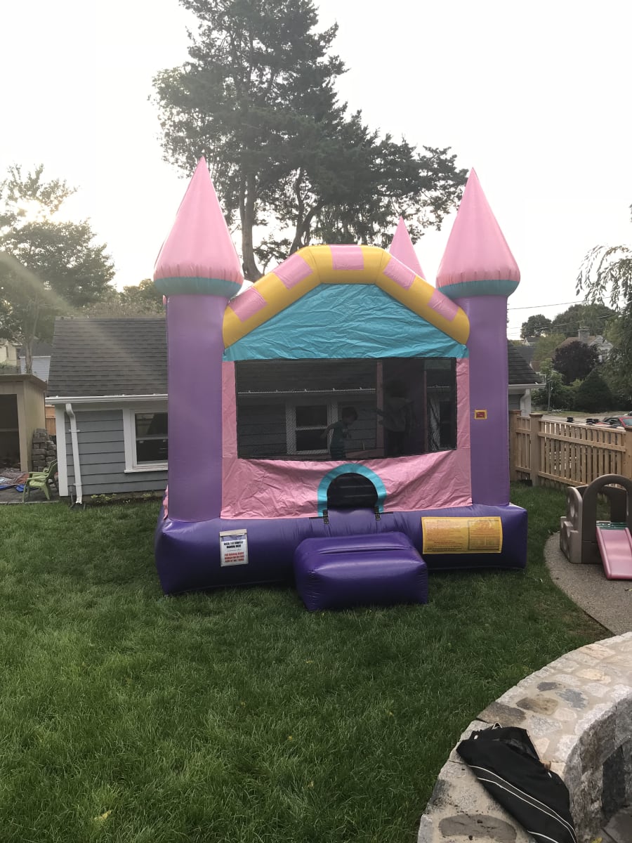 Are you looking for a bounce house for your next party event? Our Dazzling Sparkle Bounce House is great for any little girls birthday party. Let your little princess live out their dream with this beautiful purple and pink glitter colors. This unit is sure to be a hit at your little royals party. It holds a maximum of 6-8 kids of equal size at one time in bounce house. If you wanna elevate your party with some extra activity we offer the 4N1 DAZZLING COMBO which has a jump area, basketball hoop, climb wall, dry slide all inside. Feel free to check it out! Click on our DELIVERY AREAS PAGE to see if we deliver and service you area. Any questions feel free to reach us on our CONTACT PAGE or call us at 401-413-3268 24/7 ONLINE ORDERING! JUST CLICK THE GREEN BUTTON BELOW. MAKE SURE TO FOLLOW US ON https://www.facebook.com AS WE UPDATE INVENTORY FREQUENTLY.