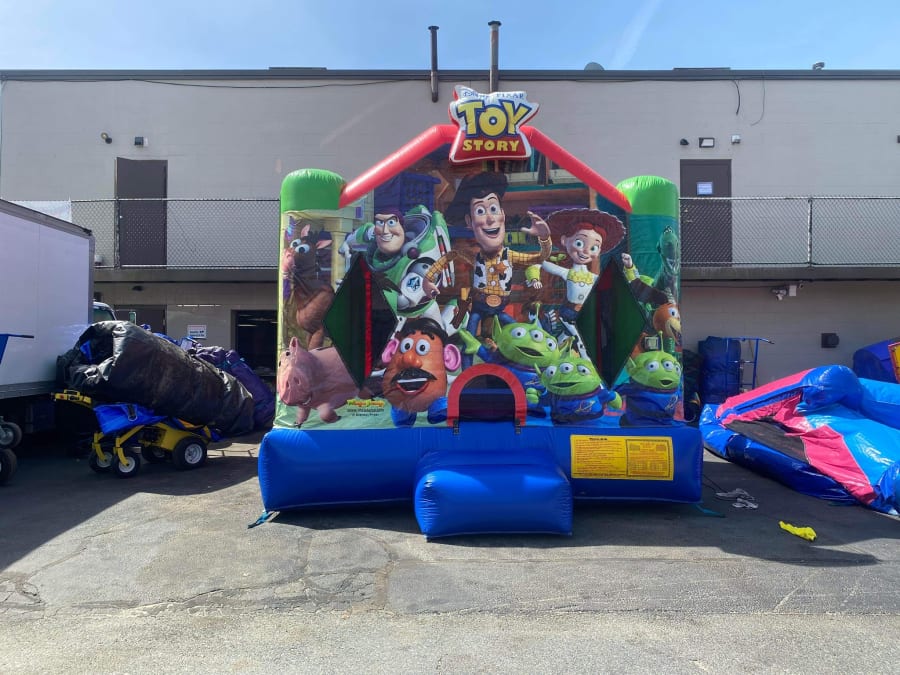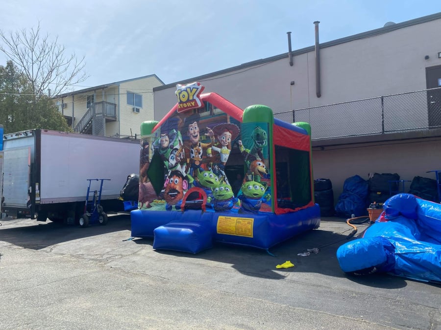 Are you looking for a bounce house for your next party event ? Look no further than Jump 4 Joy inflatables! Why not add a Toy Story bounce house to your next party event! Have the Toy Story gang help celebrate kids birthday parties, first communion, backyard events! This bounce house has a large jump area and holds up to 6-8 kids of equal size at a time in bounce house.Treat your little ones with a Toy Story bounce house rental on there special day for a time they will never forget! To see if we deliver and service your area check out our DELIVERY AREAS PAGE. You can reach us on our CONTACT PAGE or call us at 401-413-3268 or use our easy 24/7 ONLINE ORDERING! CLICK ON THE GREEN BUTTON BELOW. MAKE SURE TO FOLLOW US ON https://www.facebook.com AS WE UPDATE NEW INVENTORY FREQUENTLY.
