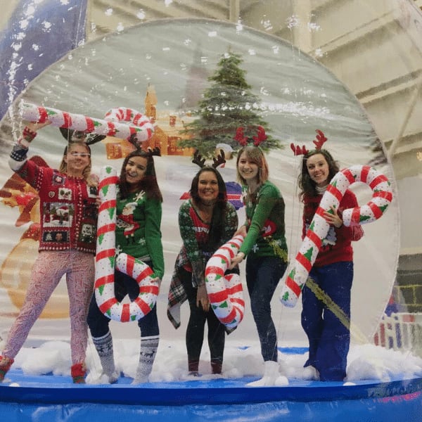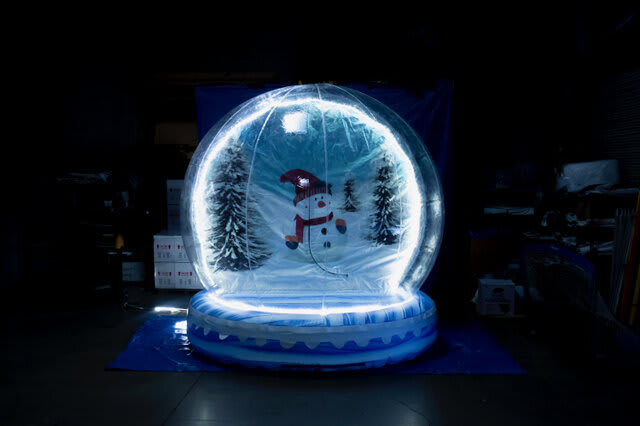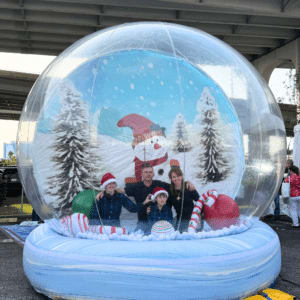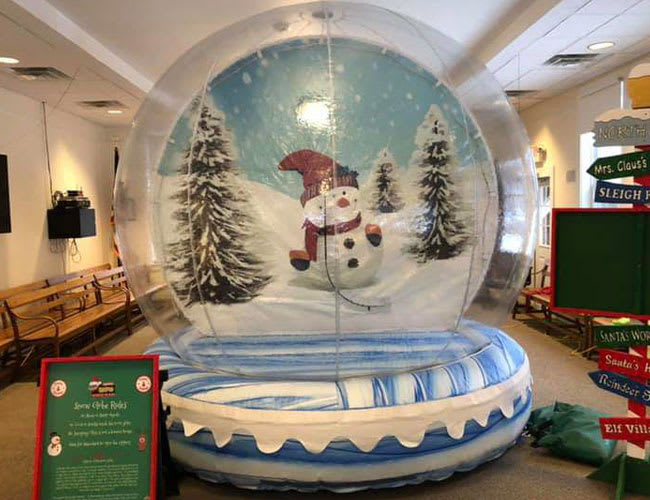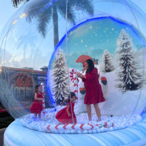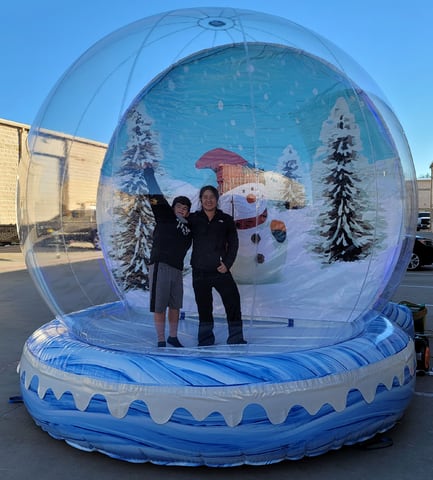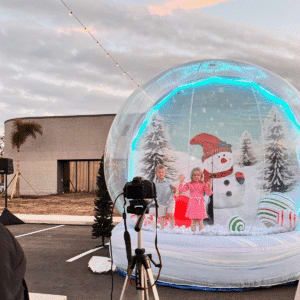 Step Right up, or should we say inside our giant inflatable snow globe rental! These amazing new structures are the perfect photo opportunity at your next event. A Holliday party favorite, thats for sure! Gather around while your guests step into the entrance chamber in the back of the snow globe then enter in front of the themed backdrop. Strike a pose or two while you get some everlasting memories created. Each snow globe can be decorated inside for additional holiday decor. Perfect idea for Christmas parties or those Winter Wonderland events. These amazing snow globes can be used indoors or outdoors. Our snow globe can fit up to 5 guests inside at one time. Just enter, strike a pose, snap a photo with camera or phone and you'll have a memorable photo souvenir to share with your family and friends. At Jump 4 Joy Inflatables we also have other theme backdrops available for various holidays and events. Consult with our office staff for more information. IMPORTANT NOTE: Although they may look like it, THESE ARE NOT BOUNCE HOUSES. They are NOT designed to be jumped in by any means. Please don't rent a snow globe with the intent to allow your guests to jump inside as it may cause injury or damage to the inflatable snow globe.