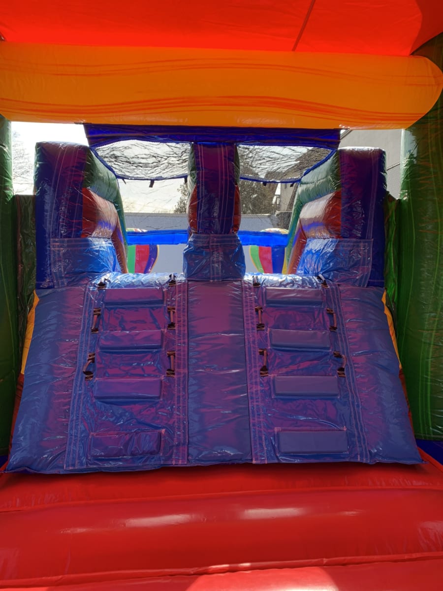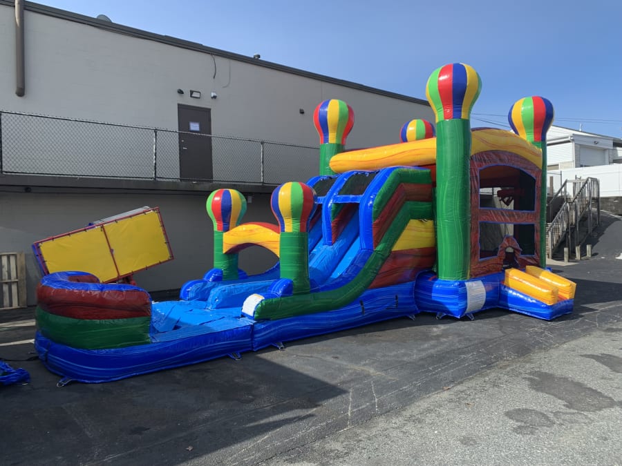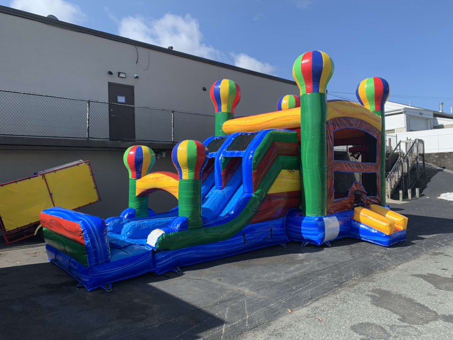 Have your guests feast their eyes on our 7n1 Balloon Combo. With its marble colors and sleek design look it really attracts the eyes and can be a hit in party events! Kids will have a blast with its large jump area, 2 basketball hoops inside unit, Double climb wall, double lane slide, which costumer can rent this combo wet or dry how ever they see fit for there party needs. This combo can hold up to 6-8 kids of equal size at a time in bounce house. Our 7n1 Balloon Combo can go to just about any event as far as a birthday, schools functions, first communion, or backyard events. You say it doesn't fit in your backyard, no problem! Check out our BALLOON BOUNCE HOUSE WITH 2 HOOPS that pretty much fits in all backyards, feel free to check it out! To see if we deliver and service your area check out our DELIVERY AREAS PAGE. You can reach us on our CONTACT PAGE or call us at 401-413-3268 24/7 ONLINE ORDERING! JUST CLICK THE GREEN BUTTON BELOW. MAKE SURE TO FOLLOW US ON https://www.facebook.com AS WE UPDATE NEW INVENTORY FREQUENTLY.