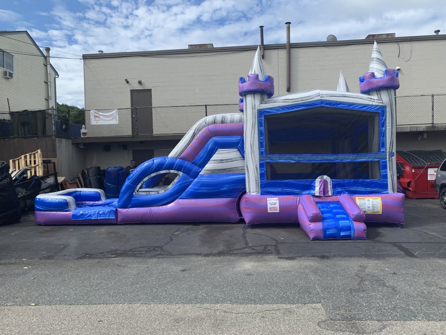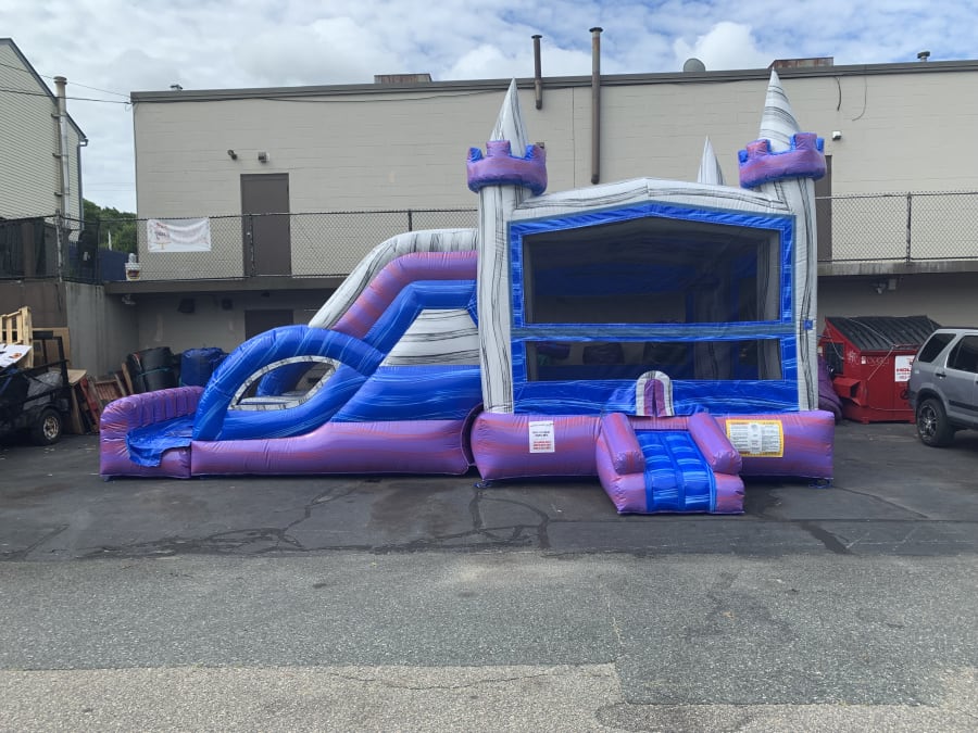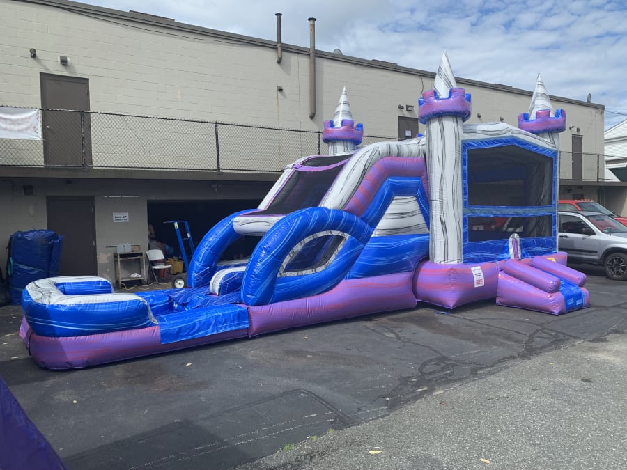 Are you looking for a combo unit that brings fun and excitement at your next party event? Look no further than Jump 4 Joy Inflatables! Introducing our 7n1 Crystal Crush Combo Wet/Dry unit is a water slide and bounce house all in one. This beautiful combo comes with a pool option at the bottom of the slide which provides maximum fun for kids on a hot summer day, And also comes with a stop bumper at the end of the slide for spring and fall season. This beautiful combo has a spacious jump area, basketball hoop, climb wall, double lane slide, all inside! Our Crystal Crush Combo is great for any birthday parties, church festivals, school field days, backyard events. With its vibrant colors and sleek looks, it's sure to be the center of attention at any party event. Click on our DELIVERY AREAS page to see if we service your area. To reserve this beautiful combo simply call us at 401-413-3268 reach us on our CONTACT PAGE or use our 24/7 ONLINE ORDERING! JUST CLICK THE GREEN BUTTON BELOW. MAKE SURE TO FOLLOW US ON https://www.facebook.com AS WE UPDATE NEW INVENTORY FREQUENTLY!
