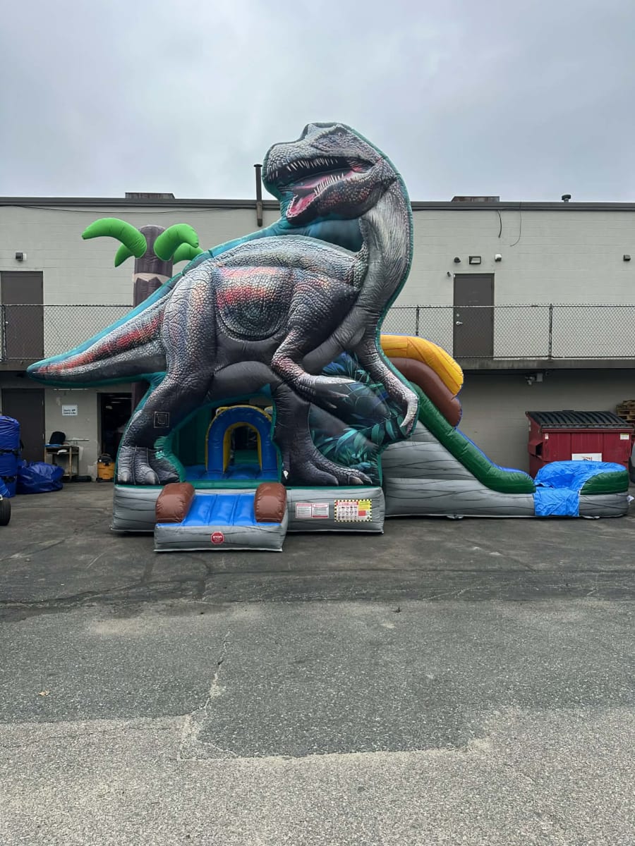 Make your next event unforgettable with the Dino Rush Combo Wet/Dry. This eye-catching inflatable delivers big fun for kids and families. It combines a slide, bounce area, and splash zone for one complete attraction. Great for birthday parties, school events, and backyard celebrations. 🎉