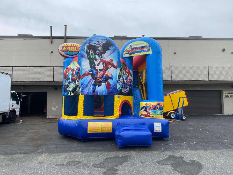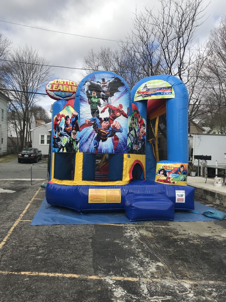 Are you looking for a Combo Bounce House for your next party event? Look no further than Jump 4 Joy Inflatables! Have Batman Superman and the rest of the justice league super heroes fight the bad guys at your next party event! Our 4n1 Justice League Combo has plenty of activity inside to keep children busy and entertained with its jump area, basketball hoop, climb wall, dry slide inside unit. Great for a boys birthday, first communion, back yard events. Have your little one feel like a super hero on his special day. We also have this Justice League version in our Bounce House Category JUSTICE LEAGUE feel free to check it out! Click on DELIVERY AREAS PAGE to see if we deliver and service your area with fun-inflatable rentals. You can reach us on our CONTACT PAGE or call us at 401-413-3268 also can email us at info@jump4joyinflatables.com 24/7 ONLINE ORDERING! JUST CLICK THE GREEN BUTTON BELOW. MAKE SURE TO FOLLOW US ON https://www.facebook.com AS WE UPDATE NEW INVENTORY FREQUENTLY.