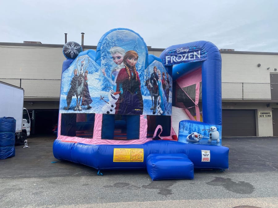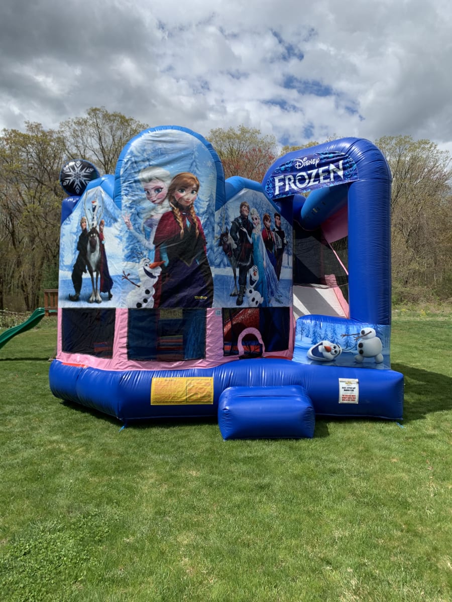 Are you looking for a Combo Bounce House for your next party event? Look no further than Jump 4 Joy Inflatables!! Our 5n1 Frozen Combo will have your little princess excited with a jumping area, basketball hoop, obstacle run, climb wall, dry slide inside unit. Our Frozen Combo is Great for a girls birthday, first communion, family gathering events. Make her feel magical on her special day. It holds a maximum of 6-8 kids of equal size at a time in bounce house. We have this Frozen version in our Bounce House Category FROZEN BOUNCE HOUSE. Feel free to check it out! To see if we deliver and service your area check out our DELIVERY AREAS PAGE. You can reach us on our CONTACT PAGE or call us at 401-413-3268 24/7 ONLINE ORDERING! JUST CLICK THE GREEN BUTTON BELOW. MAKE SURE TO FOLLOW US ON https://www.facebook.com AS WE UPDATE NEW INVENTORY FREQUENTLY.