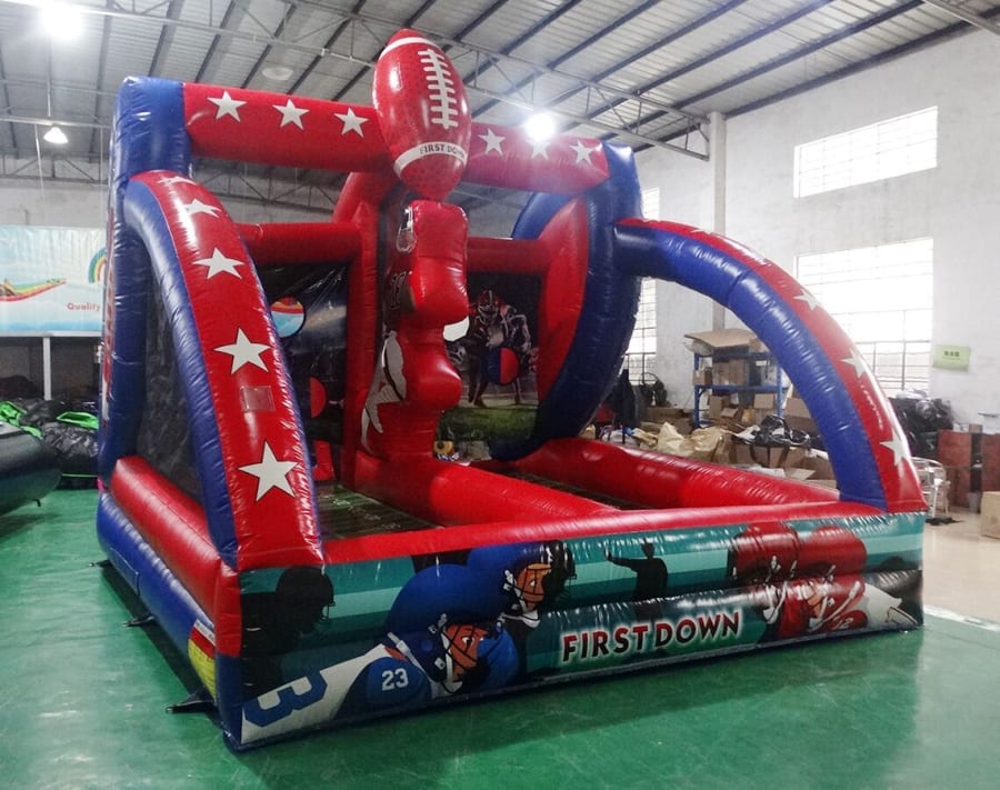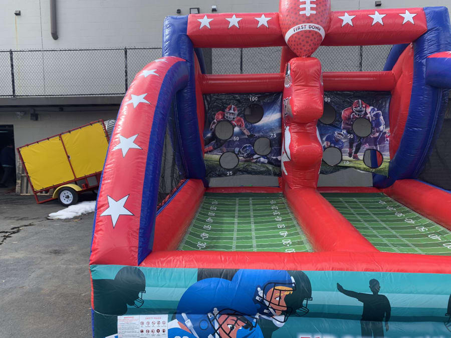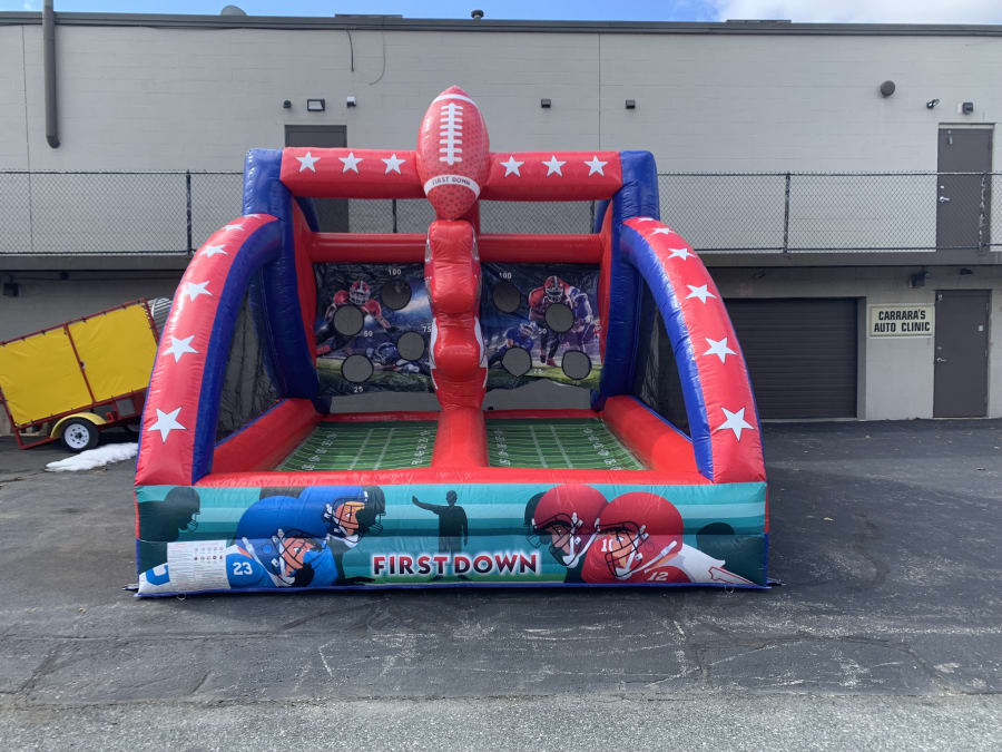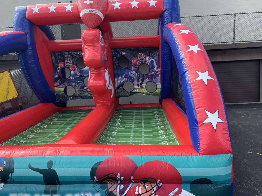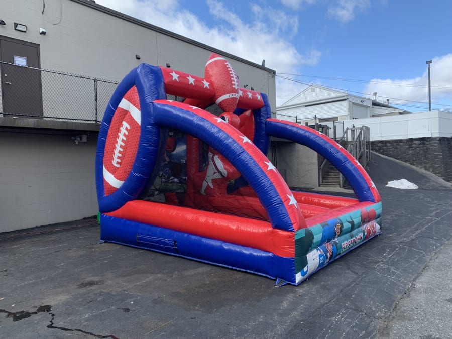 This inflatable Quarterback Challenge game is fit for any event especially a birthday, church, school, and back yard events. This game is a fun competitive 2 player where you can throw the football or not, this inflatable Quarterback Challenge game is great for all ages where you test your skills in friendly play competition. ( 2 FOOTBALLS INCLUDED ) To see if we deliver and service to your area check out our DELIVERY AREAS PAGE. You can reach out to us in our CONTACT PAGE or call us at 401-413-3268. 24/7 ONLINE ORDERING! JUST CLICK THE GREEN BUTTON BELOW.