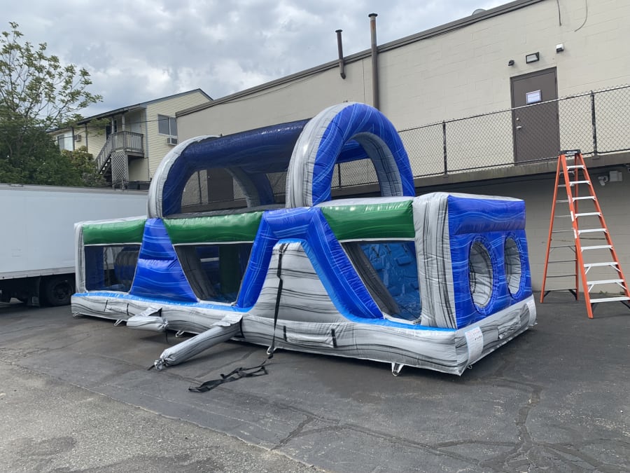Are looking for an obstacle course for your next party event ? Look no further than Jump 4 joy inflatables. Our backyard obstacle course will have your guests excited and entertained as 2 players test their skills and go through many obstacles to see who makes it to the end first. Our backyard obstacle course is great for any birthday, graduation, school functions, and back yard events. This Backyard obstacle course is perfect for smaller yards and assures your guests lots of fun and keeps the kids and adults entertained at your party event. Click on our. DELIVERY AREAS PAGE to see if we deliver and service your area. To make a reservation simply go on our 24/7 ONLINE ORDERING! JUST CLICK THE GREEN BUTTON BELOW OR CALL US AT 401-413-3268 OR OUR CONTACT PAGE.