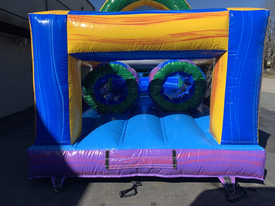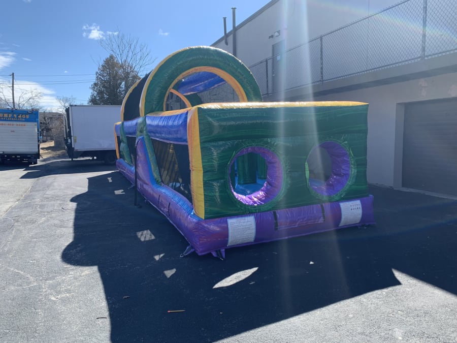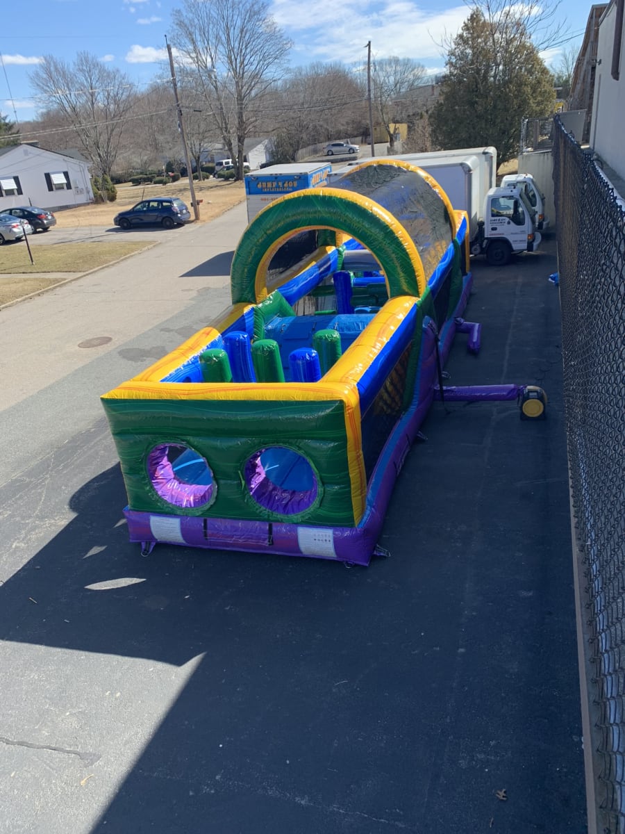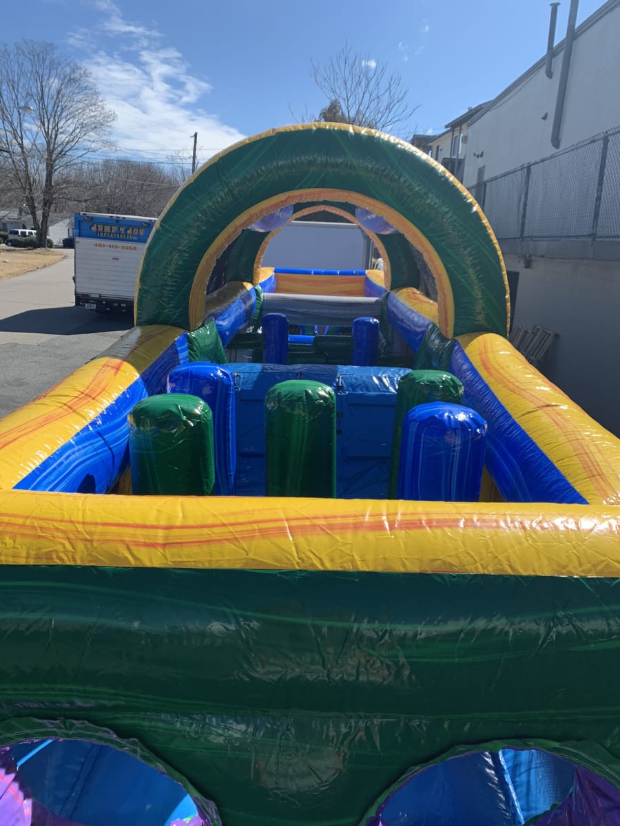 Are you looking for an Obstacle Course for your next party event? Look no further than Jump 4 Joy Inflatables! Our Goombay Obstacle Course is neutral friendly and is a customer favorite because of its bright and vibrant colors which is the center of attention at events! As 2 participants race through many objects standing in there way as they have to crawl under, jump over, go through tunnels, hurdle, climb wall, and slide down to see who makes it to the finish! Our Goombay Obstacle Course will provide hours of fun and entertainment and will test your skills in a competitive friendly competition. Our Goodbay Obstacles Course is great for party events such as birthdays, school functions, church festivals, corporate outings, backyard events. Click on our DELIVERY AREAS PAGE to see if we service your area. If you are interested in our service we can be reached at 401-413-3268 our CONTACT PAGE or use our easy 24/7 ONLINE ORDERING! JUST CLICK THE GREEN BUTTON BELOW