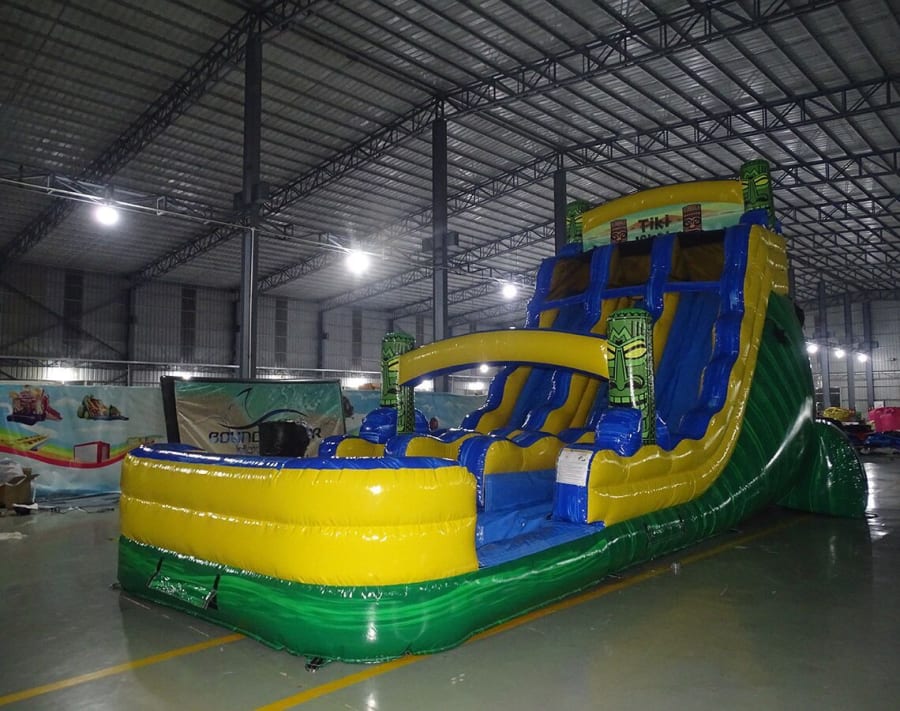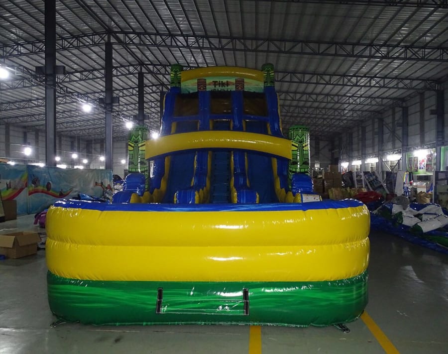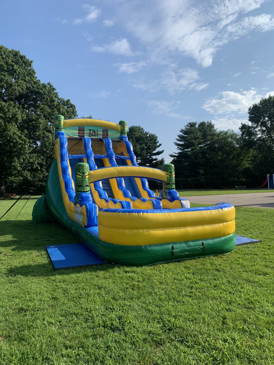 Are you looking for a waterslide for your next party event ? Our Tiki Shot waterslide is a real crowd pleaser, With its vibrant colors and XL pool, we're certain this waterslide will keep your guests busy! With its dual lanes you and a friend climb up the middle foam steps and slide down together to see who splashes first in a friendly competition. Our Tiki Shot waterslide will keep your guests entertained and busy all day long!! To see if we deliver and service to your area check out our DELIVERY AREAS PAGE. You can reach us on our CONTACT PAGE or call us at 401-413-3268 24/7 ONLINE ORDERING! JUST CLICK THE GREEN BUTTON BELOW